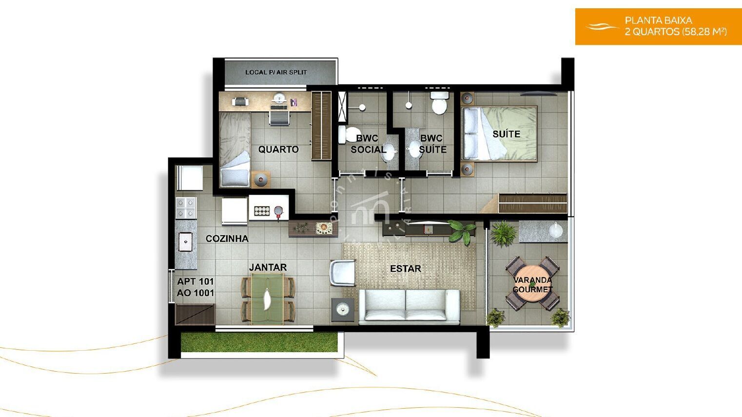 *Só existe unidade decorada do Studio, mas o empreendimento dispõe de unidades de 2 quartos.